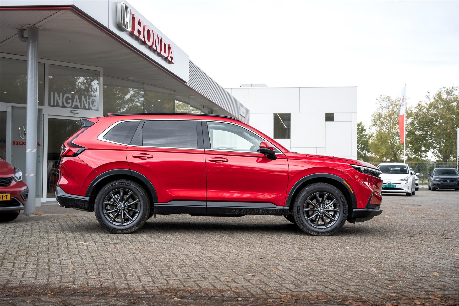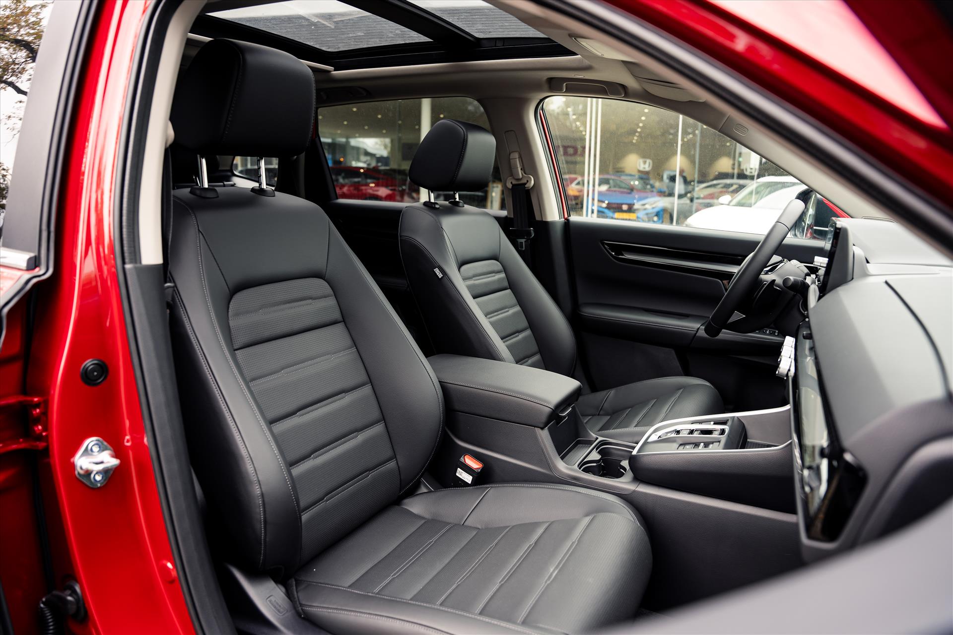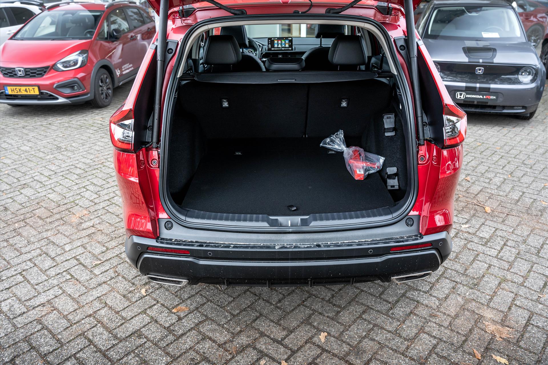 Doordachte techniek en intelligente systemen zijn pas waardevol wanneer ze een functie hebben. Meer dan wie ook hebben de Japanse autofabrikanten dit door, en dat merkt u ook aan deze HONDA CR-V. Het gaat hier om een nieuwe auto, die uit voorraad leverbaar is. Vanaf nu kunt u hybride rijden, door de combinatie van een verbrandingsmotor en een elektromotor. Als we het over extra cachet hebben, moeten we zeker het lederen interieur noemen. Stoelverwarming hoort ook bij de uitrusting van deze auto. Door het glazen panoramadak heeft u een weidse zichthoek en geniet u van licht en een gevoel van ruimte. In deze auto profiteert u onder andere ook van: 18 inch lichtmetalen velgen, LED-dagrijverlichting en LED-achterlichten.