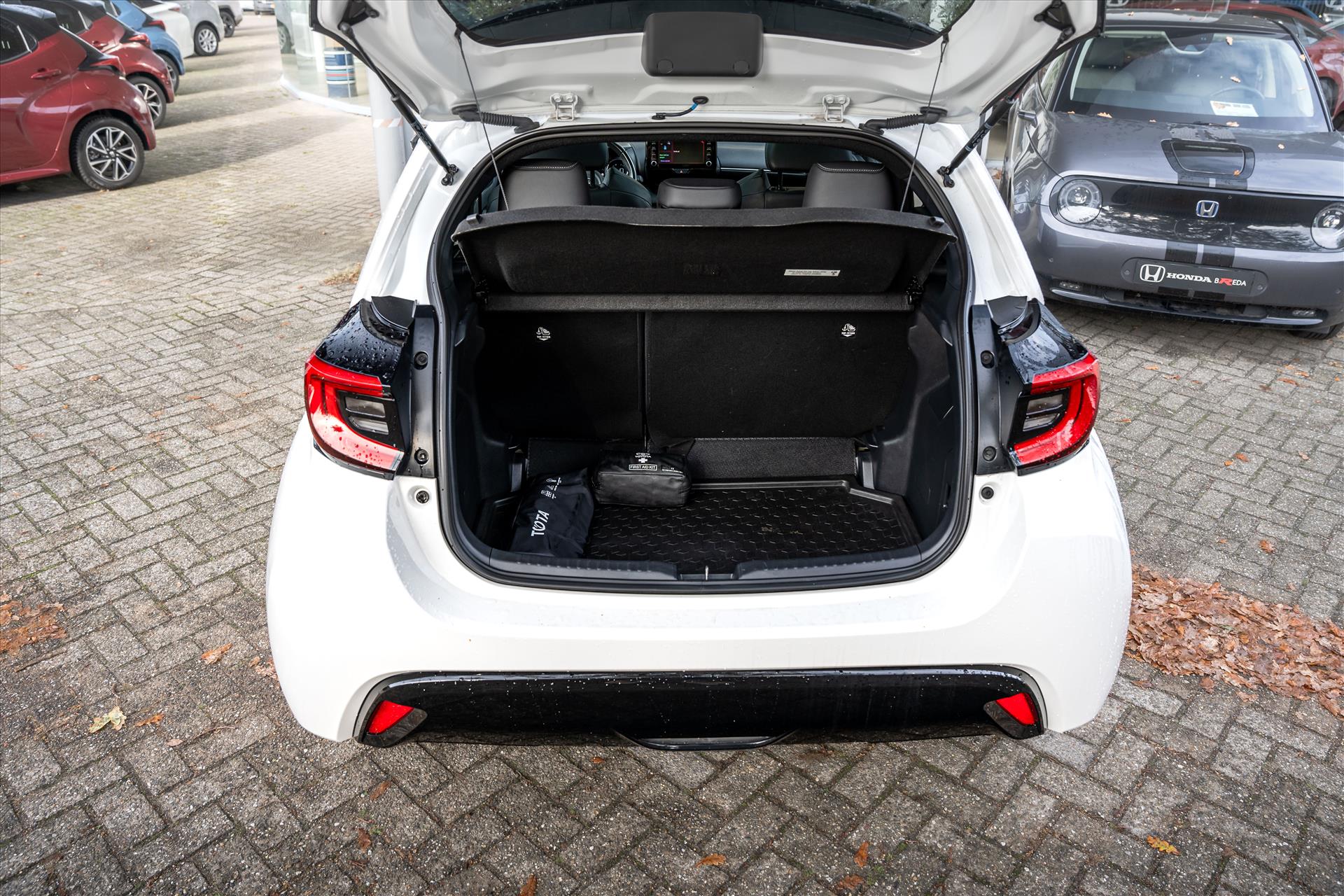 Een handige optie is de parkeerhulp met achteruitrijcamera. Achteruitrijden, inparkeren en manoeuvreren gaat gemakkelijker dan ooit. Als u de adaptive cruise control inschakelt, regelt de auto zelf de snelheid en de afstand tot de auto voor u. Ook is de auto voorzien van automatische airconditioning. Het luxeniveau in deze TOYOTA is niet alleen gericht op comfort, maar ook op uw veiligheid. Tal van sensoren helpen u om de omgeving in de gaten te houden. De automatisch inschakelbare verlichting zorgt dat automatisch de verlichting wordt ingeschakeld als het donker wordt, wat bijvoorbeeld in tunnels erg handig is. En de regensensor zet de ruitenwissers aan zonder dat u eraan hoeft te denken. Deze TOYOTA Yaris is voorzien van keyless entry, waardoor de portieren en achterklep vanzelf open gaan als u in de nabijheid komt. Extra opties op deze auto zijn: isofix-aansluiting, usb-aansluiting en in hoogte en diepte verstelbaar stuur.
